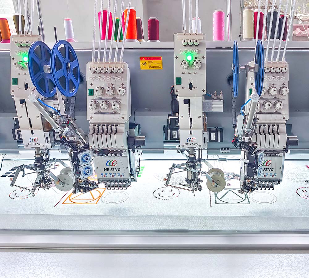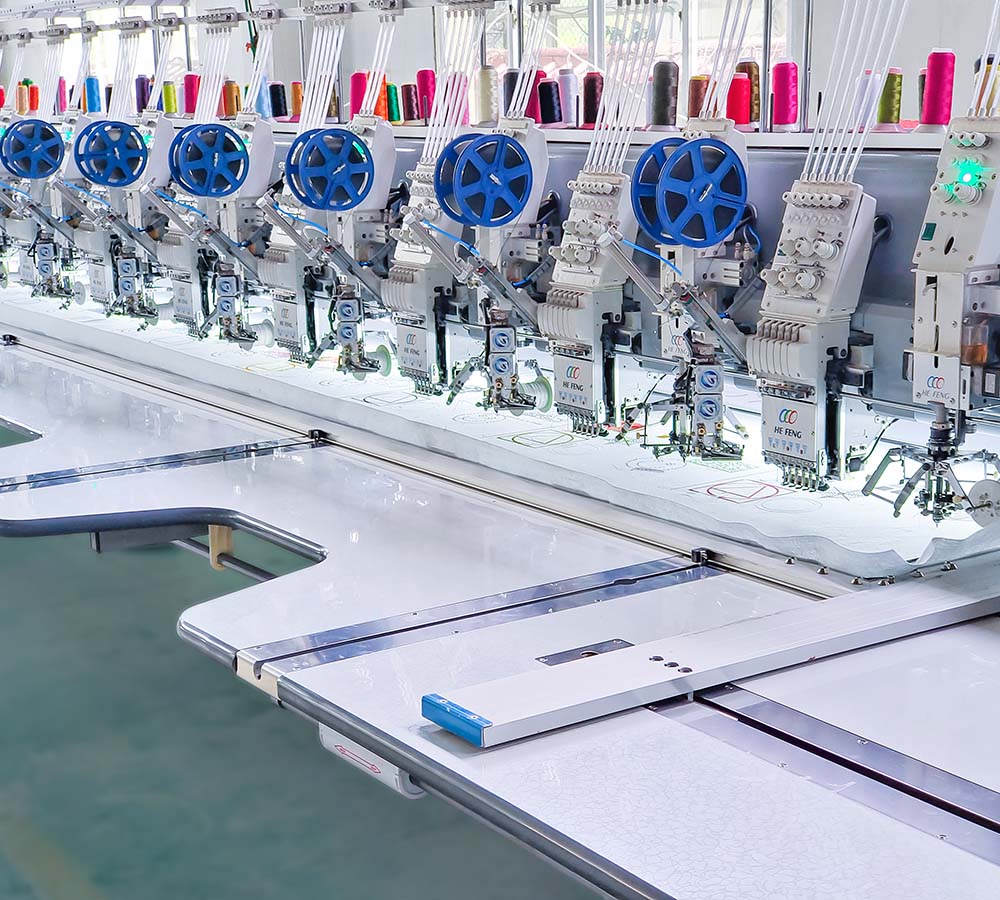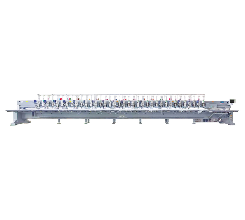 | 型号 | 单/双向 | 平绣针数 | 平绣头数 | 缠绕绣针数 | 缠绕绣头数 | 机头间距(mm) | 刺绣面积(mm) | 平绣转数(rpm) | 缠绕绣转速(rmp) | 功率(kw) | 电源 | 机器尺寸 |